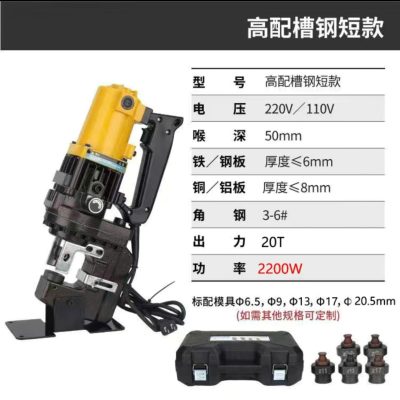 Máy Đột Lỗ Thủy Lực Cầm Tay Chạy Điện MHP-20Máy Đột Lỗ Thủy Lực Cầm Tay Chạy Điện MHP-20 là thiết bị cầm tay chuyên dụng tạo lỗ tròn, ovan hoặc hình vuông trên các vật liệu kim loại như đồng, nhôm, tôn, thép, inox…máy có thiết kế nhỏ gọn, trọng lượng nhẹ, sử dụng trực tiếp nguồn điện 220V. Rất tiện dụng khi mang công trình, thi công trên cao…Máy Đột Lỗ Thủy Lực Cầm Tay Chạy Điện MHP-20 được chế tạo bằng vật liệu cao cấp tiêu chuẩn Châu Âu giúp giảm trọng lượng máy nhưng vẫn đảm bảo độ cứng chắc, chịu áp lực lớn. Máy được tích hợp sẵn hệ thống bơm thủy lực, động cơ với công suất 1300W, 100% dây đồng bển bỉ, sử dụng nguồn 220V trực tiếp dễ dàng sử dụng. Tốc độ đột nhanh chỉ đến 2s/lần giúp tăng cao hiệu suất làm việc gấp nhiều lần so với sử dụng máy khoan thông thường.Máy Đột Lỗ Thủy Lực Cầm Tay Chạy Điện MHP-20 đi kèm có 5 bộ khuôn đột tròn với các size : 6.5 – 9 – 13 – 17 – 20.5mm, ngoài ra quý khách có thể mua thêm các khuôn đột tròn, ovan với các size khác nhau để phù hợp với yêu cầu cụ thể của công việc. Máy Đột Lỗ Thủy Lực Cầm Tay Chạy Điện MHP-20 được đóng gói trong hộp chắc chắn, dễ dàng mang vác, vận chuyển đi công trình.Thông số kĩ thuật Máy Đột Lỗ Thủy Lực Cầm Tay Chạy Điện MHP-20: – Nguồn : 220V-60Hz – Công suất : 900W – Lực đột : 10T – Họng sâu : 41mm – Đột dày : 6mm với tôn,thép – 10mm với đồng,nhôm – Khuôn đột đi kèm : 6.5 – 9 – 13 – 17 – 20.5mm – Kích thước : 500 x 190 x 100mm – Trọng lượng: Máy 12kg, Cả hộp 16kg -Bảo hành : 12 Tháng